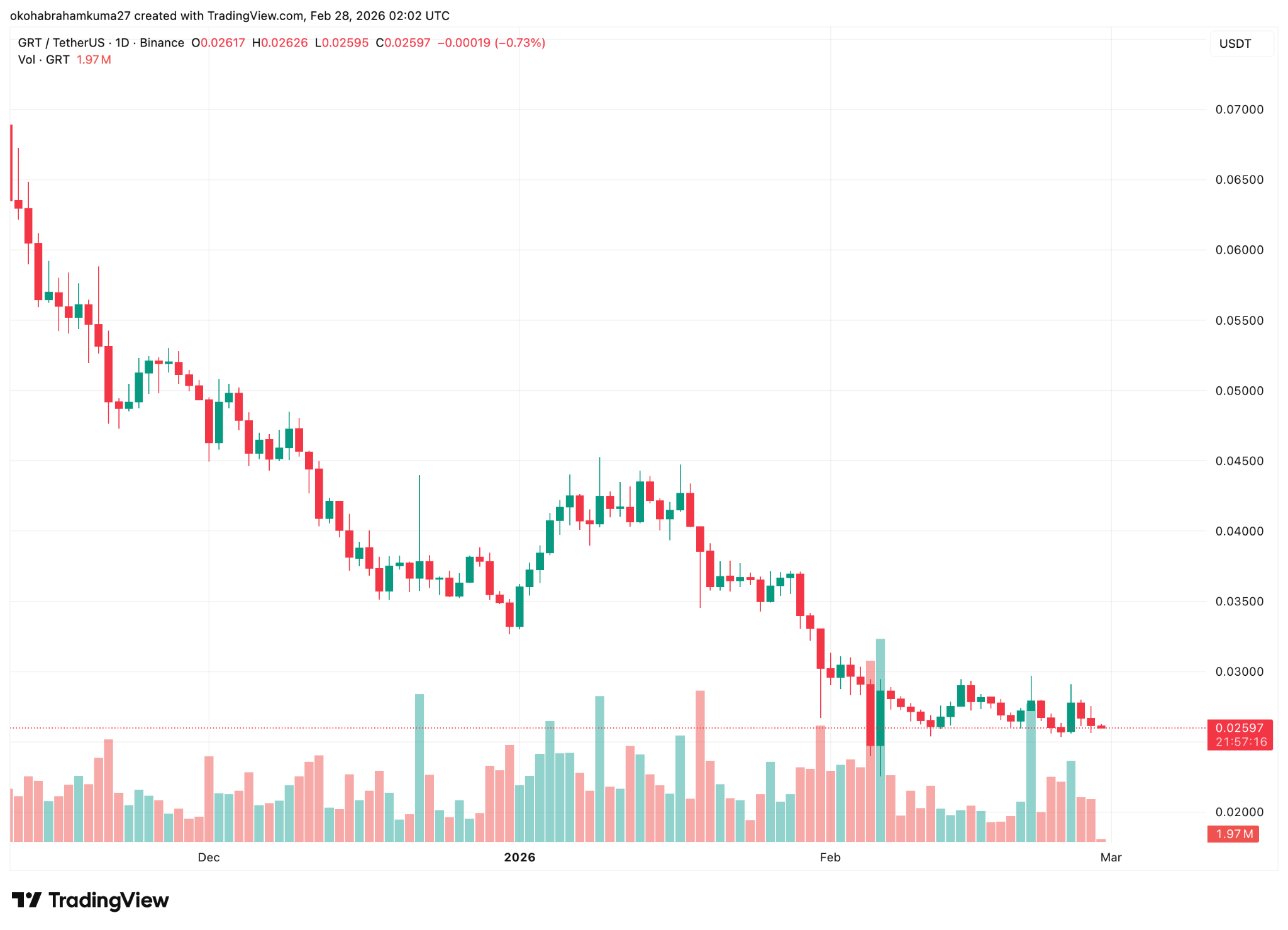 အခြေခံအဆောက်အအုံ တိုကင်များသည် မကြာခဏ အာရုံစိုက်မှုကို ဆွဲဆောင်လေ့ရှိသော်လည်း The Graph သည် လက်ရှိတွင် ရင်းနှီးမြှုပ်နှံသူယုံကြည်မှုကို ထိန်းသိမ်းရန် ရုန်းကန်နေရသည်။ ဖေဖော်ဝါရီလ ၂၇ ရက်နေ့အထိ၊ ဤဒင်္ဂါးပြား၏ ဈေးနှုန်းသည် ဖြစ်သည်။ သို့သော် The Graph သည် ဝက်ဝံသဘောထားဖြင့် အလွန်ကြောက်ရွံ့မှုအဆင့်အတွင်း နက်ရှိုင်းစွာရှိနေသည်။